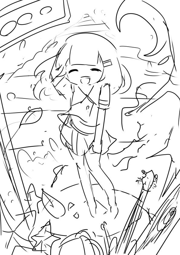 1 2 #私のヤバい初手と完成 #イラスト 画用紙ラフ→超でかサイズ 23/03/12 13:28