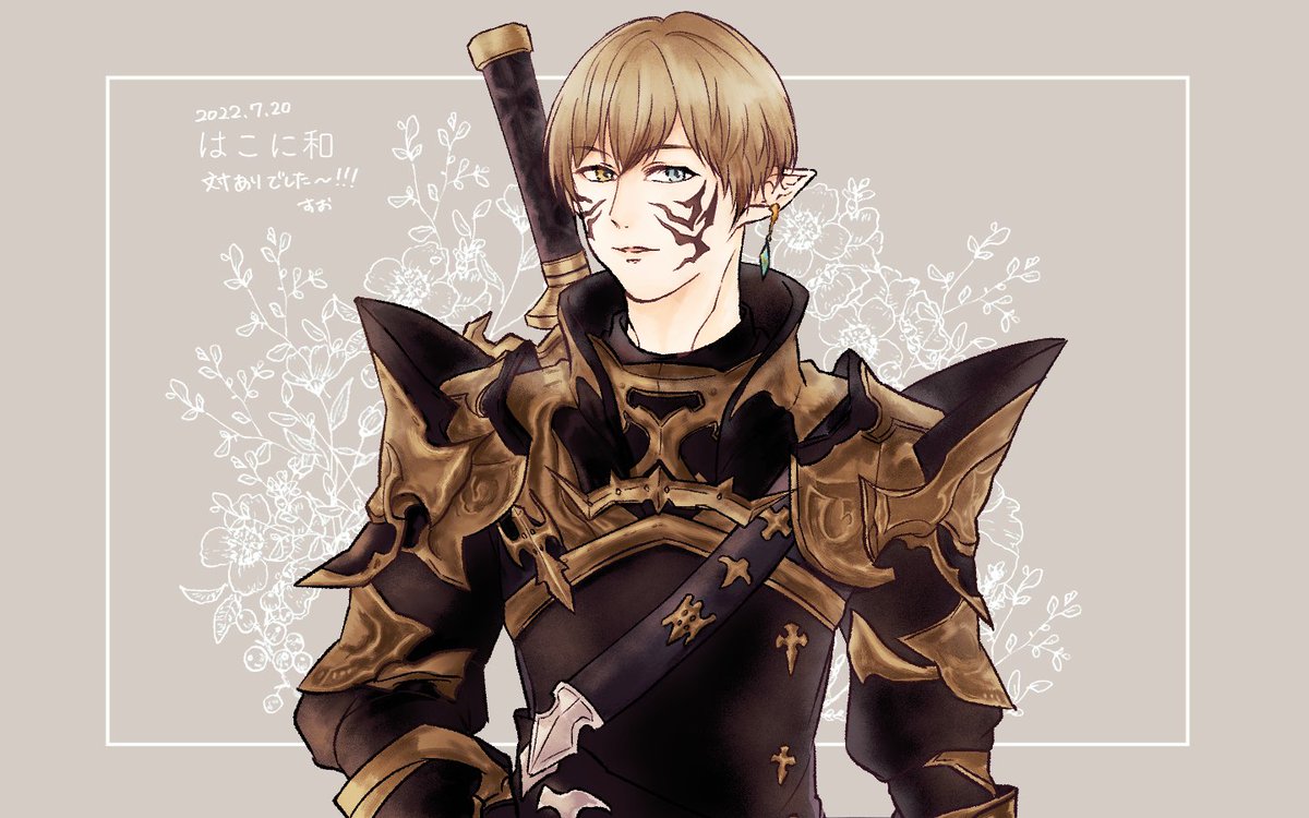 3 18 優しいお顔立ちにフェイスペイントがかっこいいエレオスさん!鎧から武器まで雰囲気に合ってらっしゃって描いててとても楽しかったです! 対面ありがとうございました~~!! #はこに和 #はこスケッチ 22/07/21 21:41