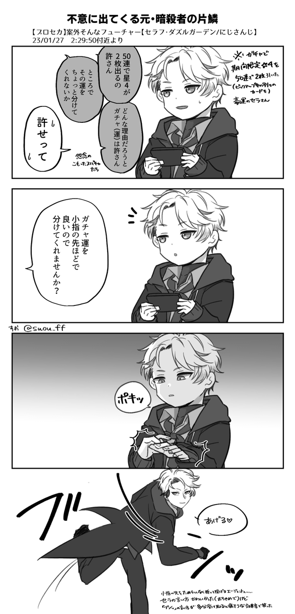 昨日のプロセカ配信がセラフの個人枠初リアタイだったんですが、スパチャ読みの一幕があまりにも面白すぎてしばらくここのシーン繰り返し見てました。 同期コラボでの出演時とは違う一面見れるの面白いな~~~ #SeraPic