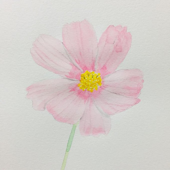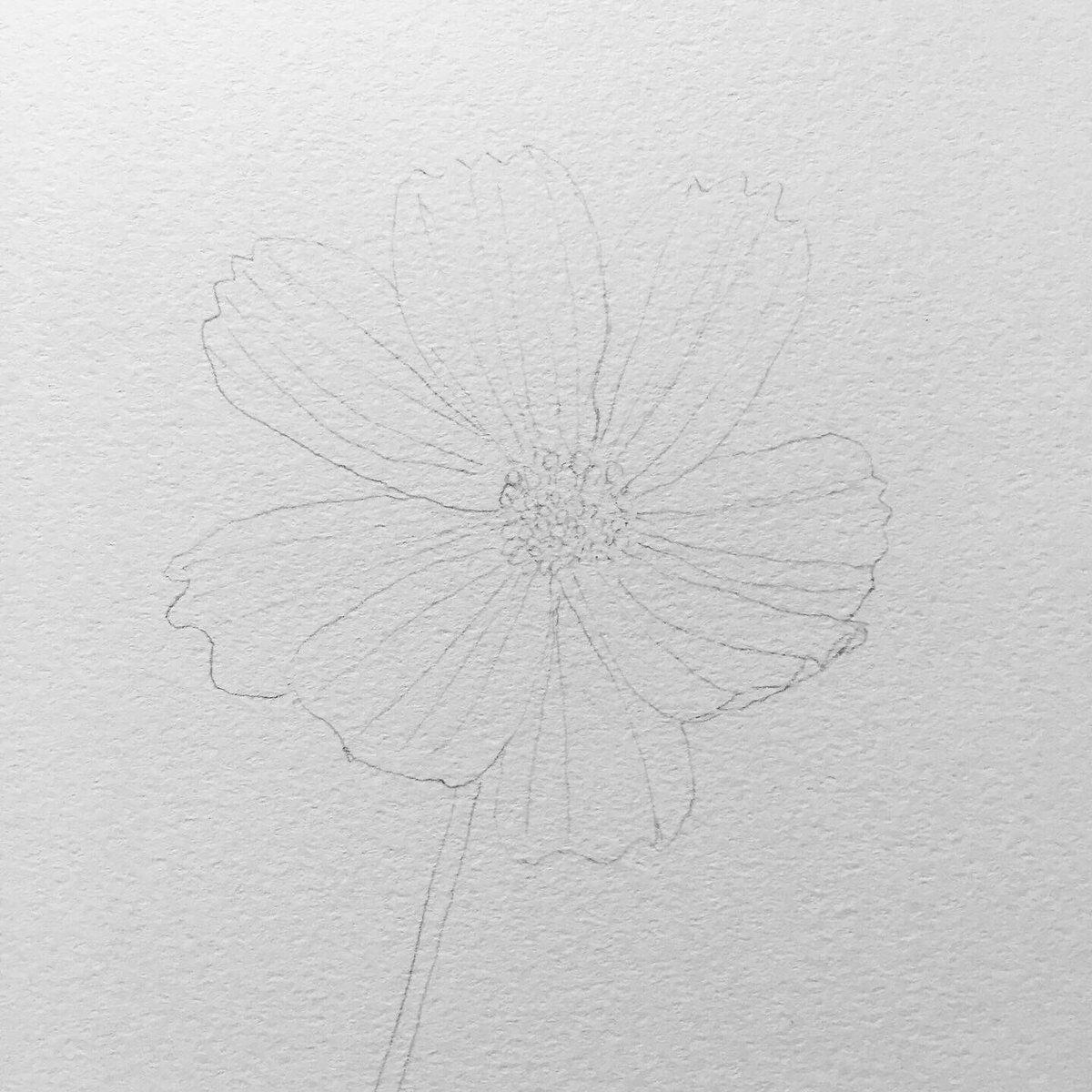 水彩画に挑戦 #コスモス #cosmos #秋桜 #水彩画 #鉛筆画 #illustration #drawing