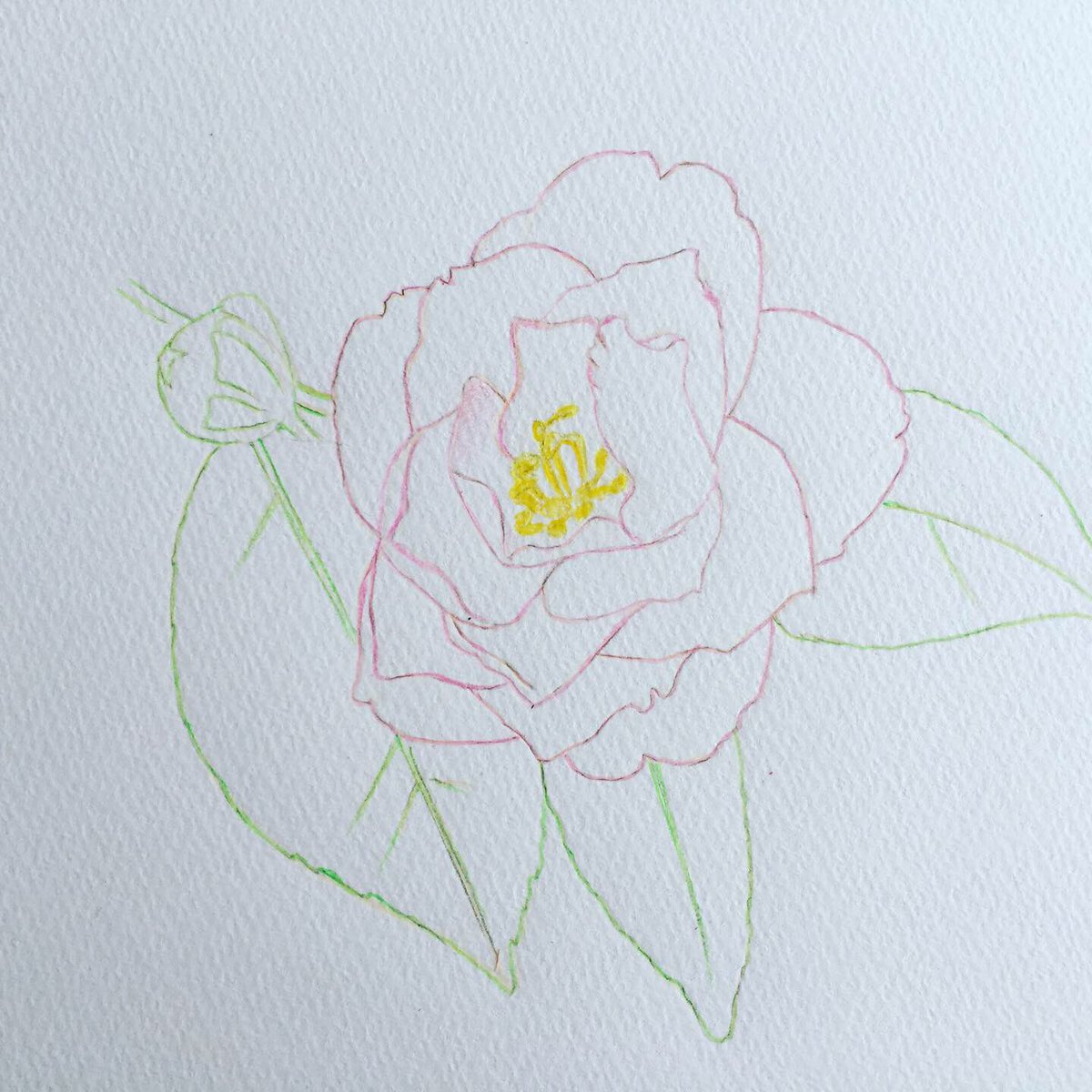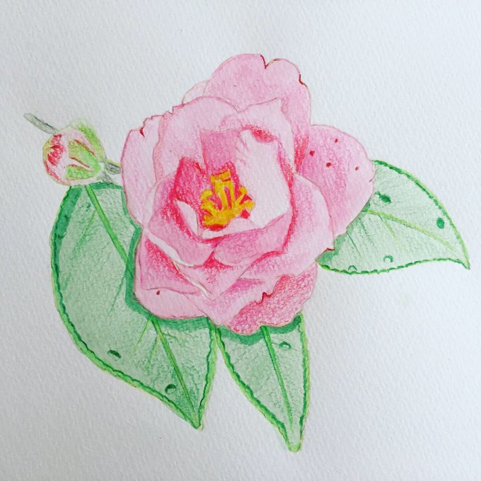 3 17 「一輪の冬」 #山茶花 #さざんか #模写 #色鉛筆 #水彩画 #絵 #イラスト #アナログ #美術 #illustration #illust #art #drawing #draw 21/01/13 13:55