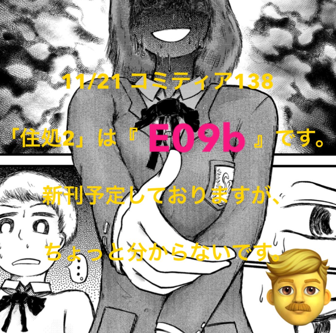「住処2」は 11/27 コミティア142では、西ホール「Q24b」 12/31 コミケット101では、二日目土曜日西ホール「ぬ03b」で出展します。 #COMITIA142 #コミケ101 #コミケ当落