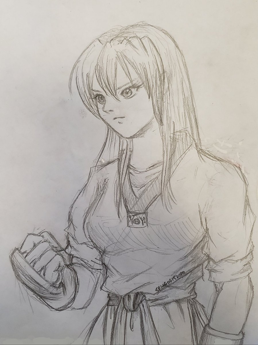 Doodle @ work #rkgk Random martial arts chick Pencil on paper June 15, 2020