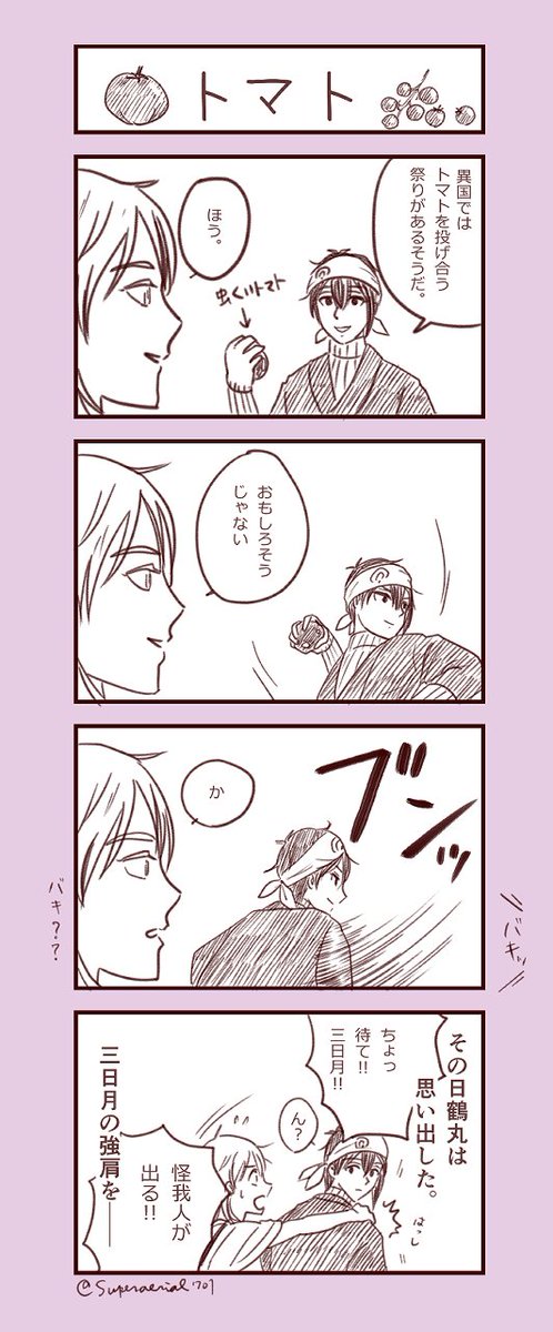 今さらながらの黒インナー鶴丸さん。何を持たせるか迷っていたらバ☆ュケとのお声がありましたので採用させていただきました。上だけでなくて袴の下にスポーツレギンス履いていたら良いですね! poipiku.com/11263/7925950.…