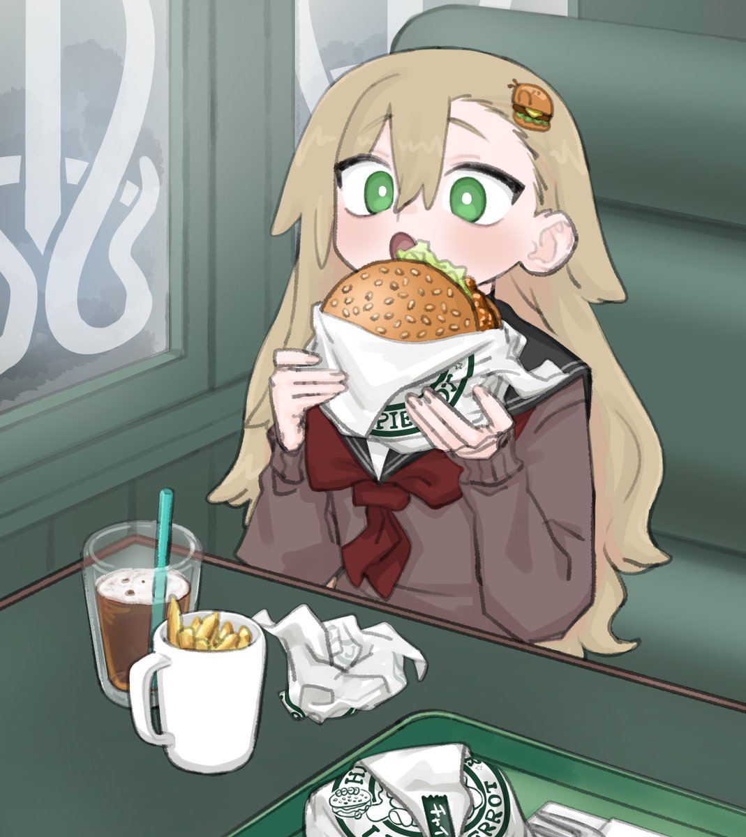 Skebでラッキーピエロのハンバーガーを食べるまたんごむちゃんを描きました