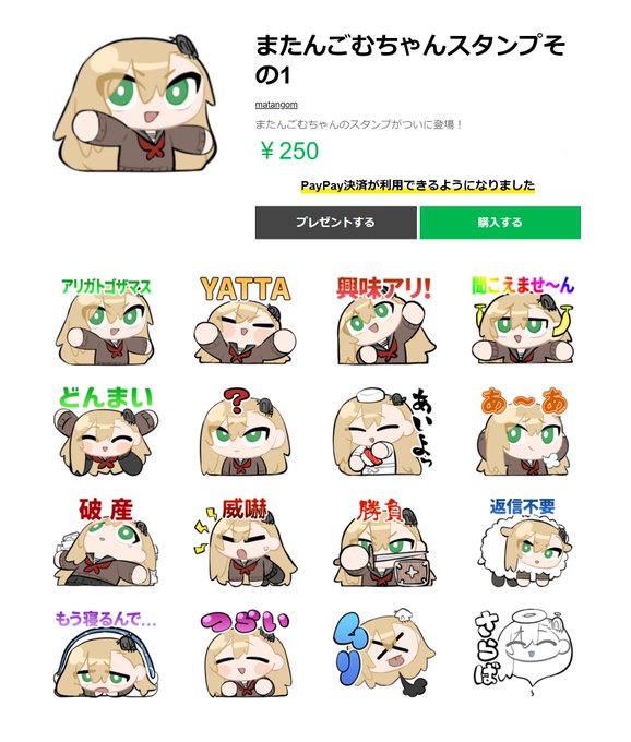 またんごむちゃんのLINEスタンプが承認されて購入できるようになりました! store.line.me/stickershop/pr… なにとぞ!