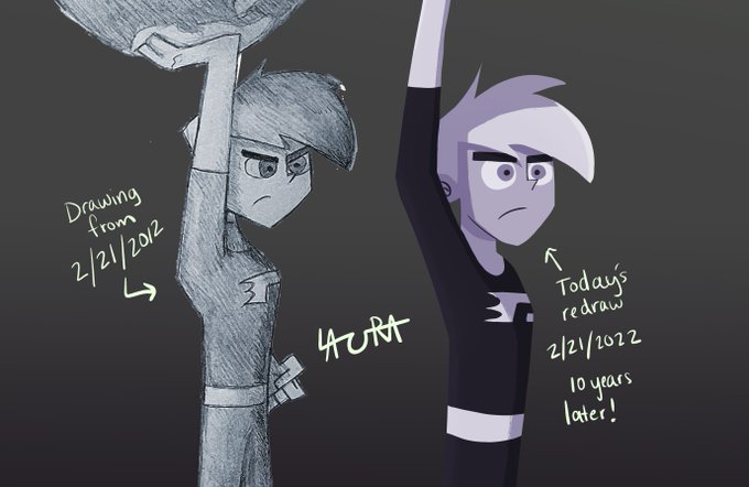 A redraw of a drawing I did 10 years ago to the date!! I thought I’d try to redraw it, problem is, I didn’t wanna redo the whole thing, or spend that much time on it, so the torso is all you’re getting, lol. #dannyphantom #10yearredraw #redraw #fanart