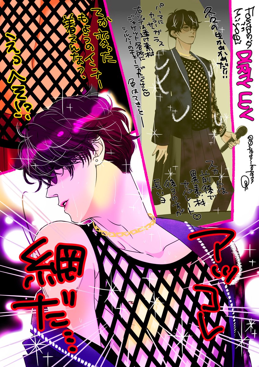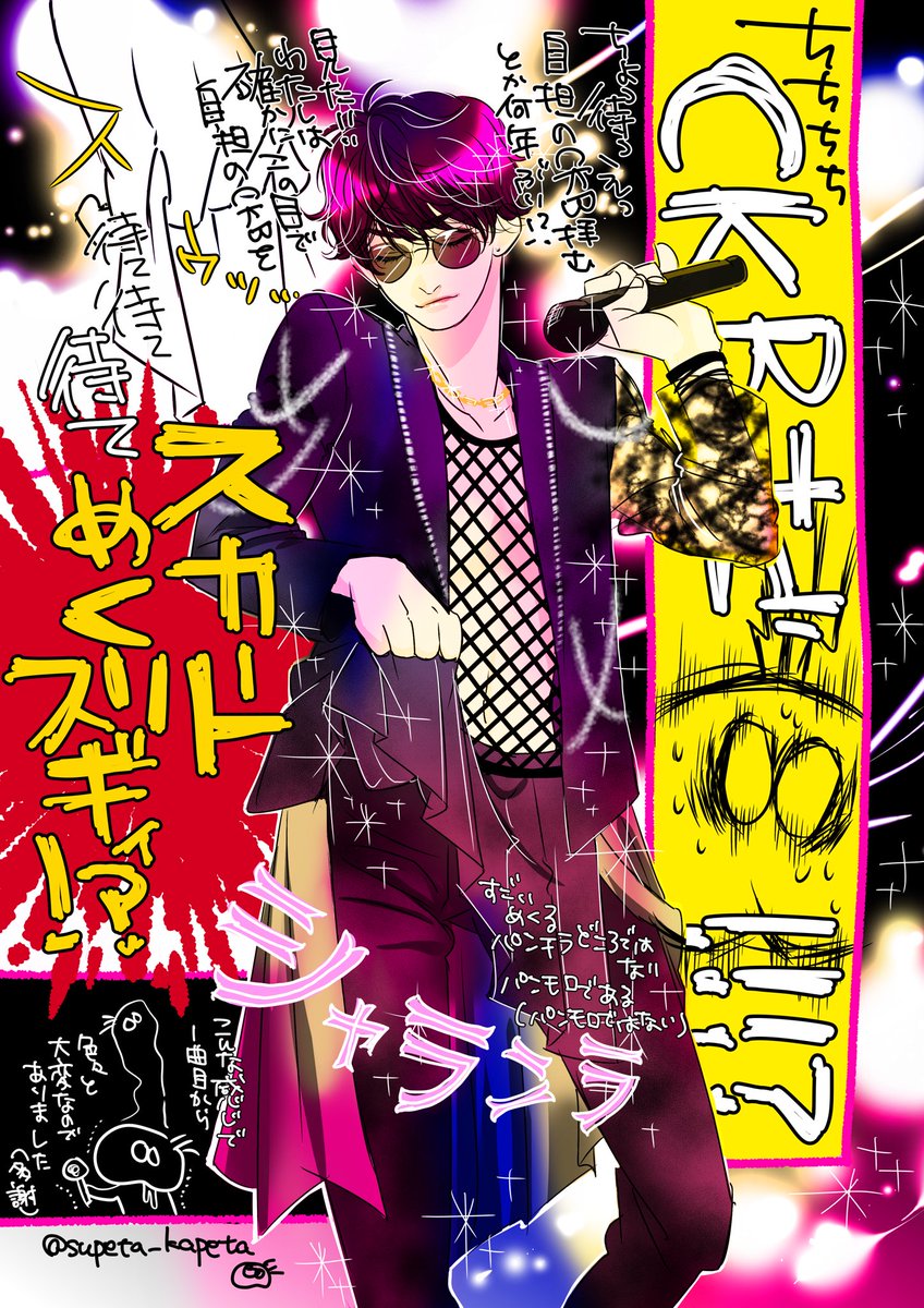 ファンティジャ絵日記そのに。 何が描きたかったのかよくわかんなくなってきた(は?) お衣装のパンツのラインはダンサーさんにもあったかもしれないしなかったかもしれないし早くもっかい観て確認してぇです。 #Fantasia宮城
