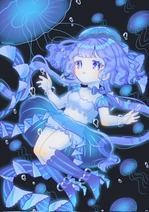 8 58 #イラスト #創作 #女の子 #オリジナル #海月 #絵描きさんと繫がたい #絵柄が好みって人にフォローされたい #みんなで楽しむTwitter展覧会 最果ての海の海月姫 22/08/28 20:02