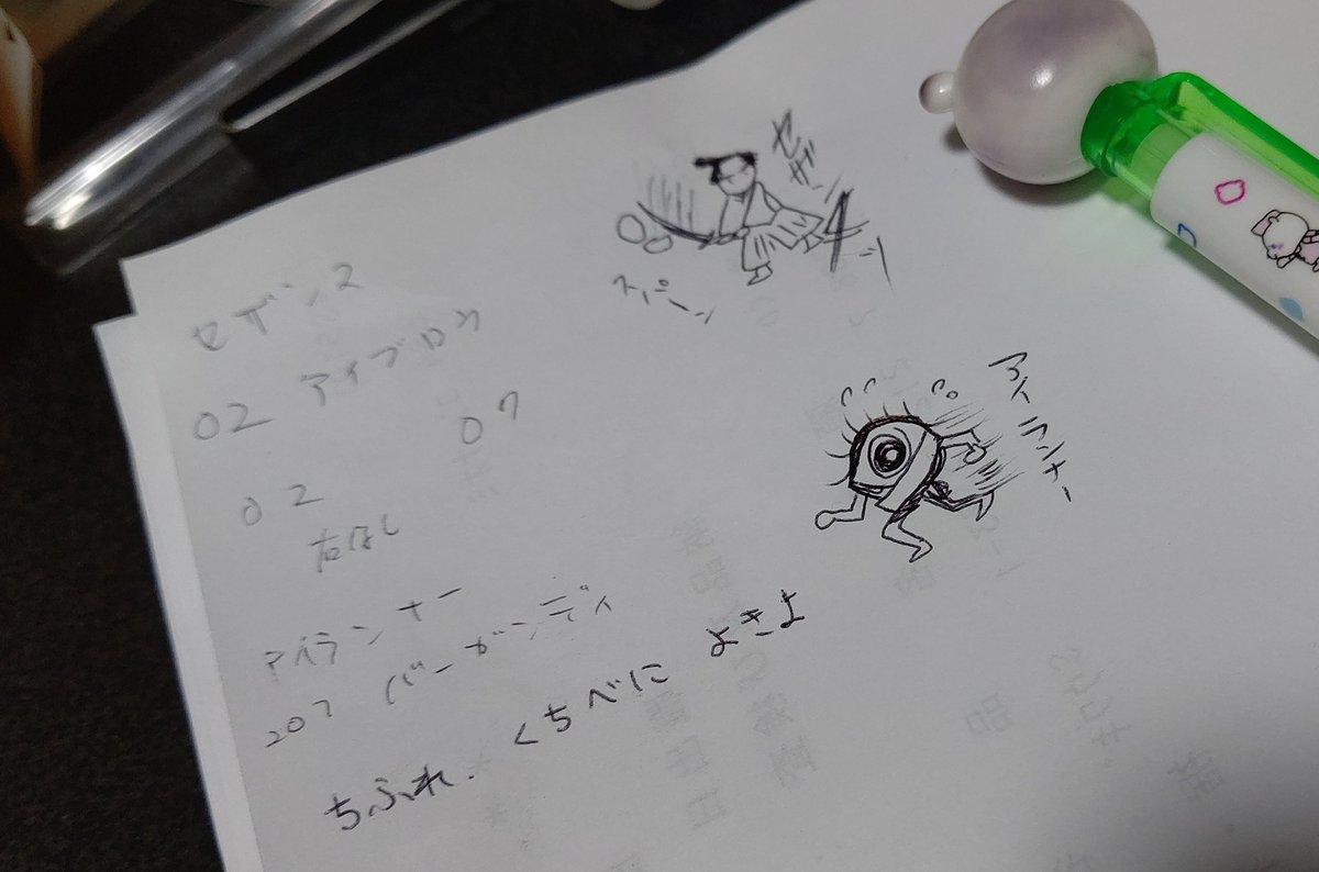 お母ちゃんの化粧品?のメモに落書きしてみた