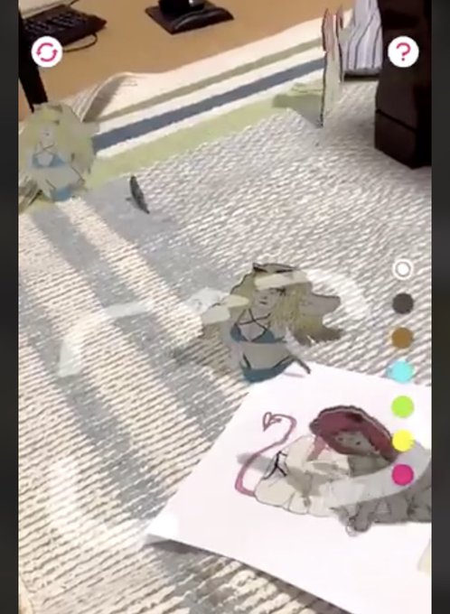 ちなみにこのアプリは「らくがきAR」というものです。 思ってたのと違うけど一応自分の描いた絵が現実世界に飛び出してきます。 #らくがきAR twitter.com/suppon2525/sta…