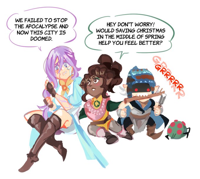 #criticalrolespoilers from #criticalrole C3EP64 #criticalrolefanart Team Wildemount and Team Issylra reunion <3 (pretend Fearne is a raccon dog for full accuracy)