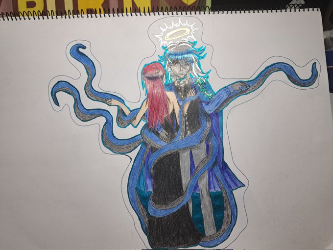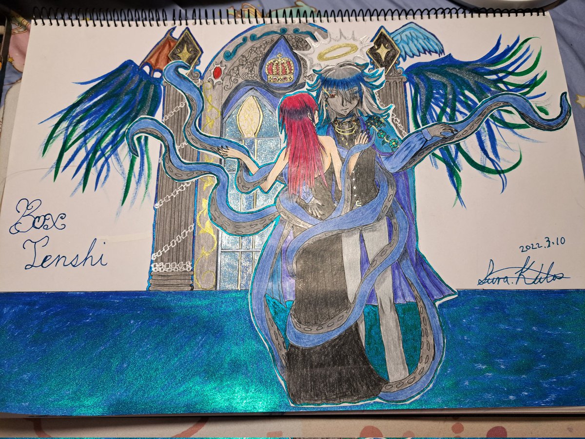 Finally is colouring is finished 💙❤️🙏🏻,background maybe later~time go to bed 🛌 night everyone #boxtenshi #voxakuma #akurylic
