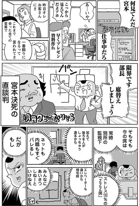 【告知】明日クビになりそう5巻が4/20(木)に発売になりました。 ろくにパソコンにログインすらできない、新人以下の宮本。5巻もまるで成長が見えませんが、引き続きお願いします。 amzn.asia/d/5WpQS9I