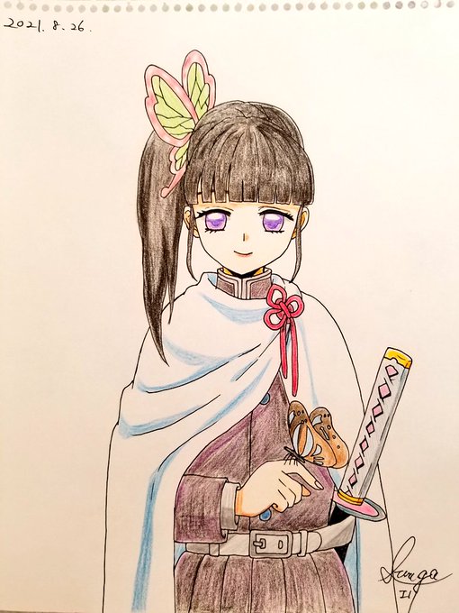 入院中に描いた物⑨ 栗花落カナヲちゃん 入院患者さんのリクエストで 30分くらいで完成させたテキトーなやつ…😇 #駿河エリ #冬の創作クラスタフォロー祭り #絵描きさんと繋がりたい #イラスト #illustration #art #drawing #鬼滅の刃ファンアート #栗花落カナヲ #模写 #アナログイラスト