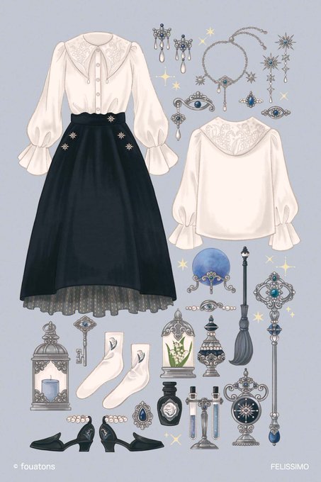 💫お知らせ💫 フェリシモ「魔法部」さんのブラウス、スカート、ブレスレットのイラスト制作とデザイン監修をさせていただきました🔮✨ 魔法部▷ felissimo.co.jp/mahoubu/