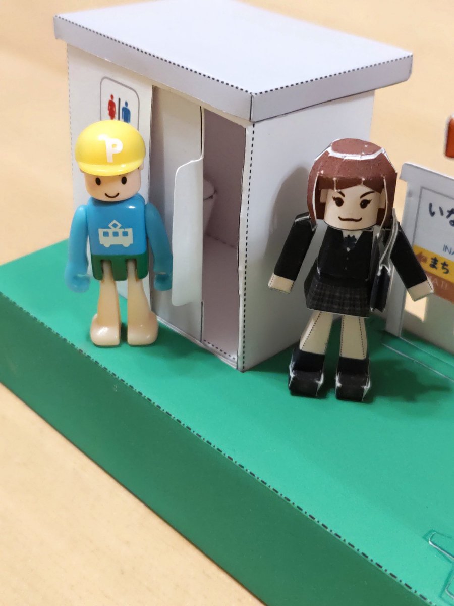 0 7 息子のリクエストの駅の試作 組んでみた!ムズい! プラキッズが座れるベンチ、入れるトイレ、可動式の扉、自動改札 一応、希望は全部満たしたけど遊べかな? #ペーパークラフト #プラレール 22/03/02 23:10