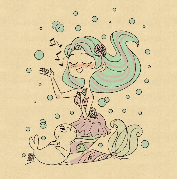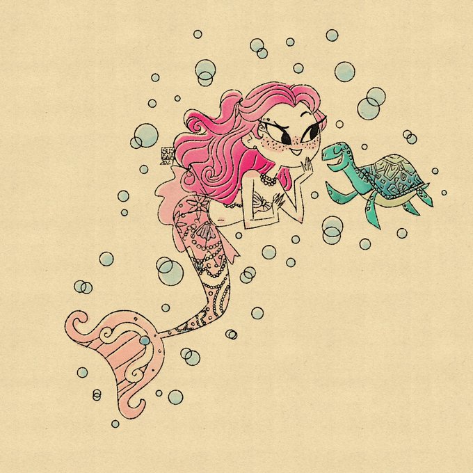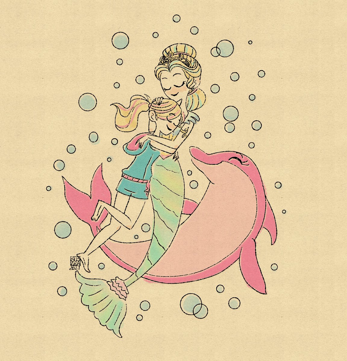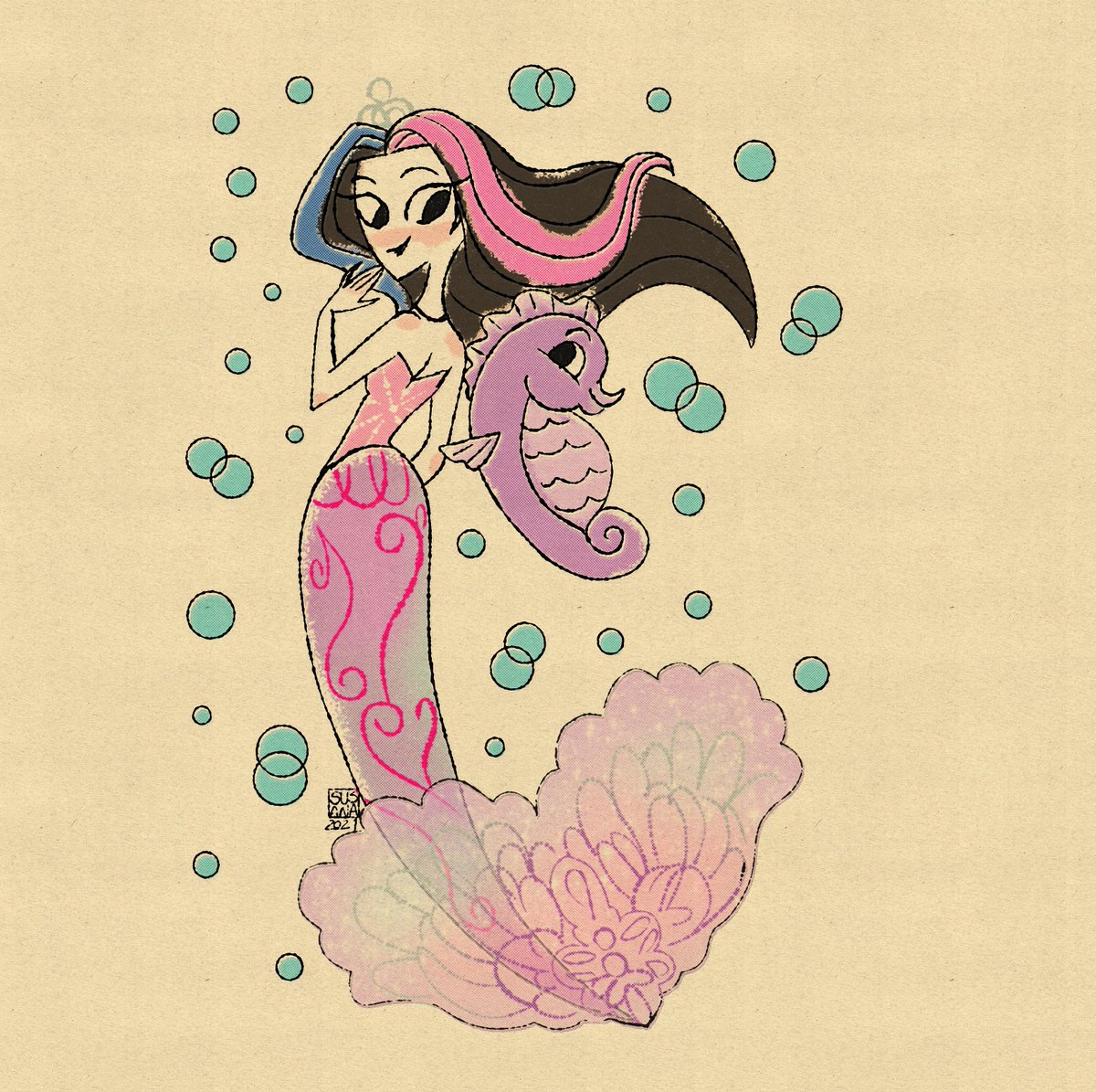 #mermay2021 #mermay - day 16 - A mini-break from Barbie and here a redraw of a mermaid I drew 21 years ago I gave her a little friend because why not? I hope little me is proud of how far we have come in our drawing skills. #susanarodriguesart #digitalart #ArtistOnTwitter
