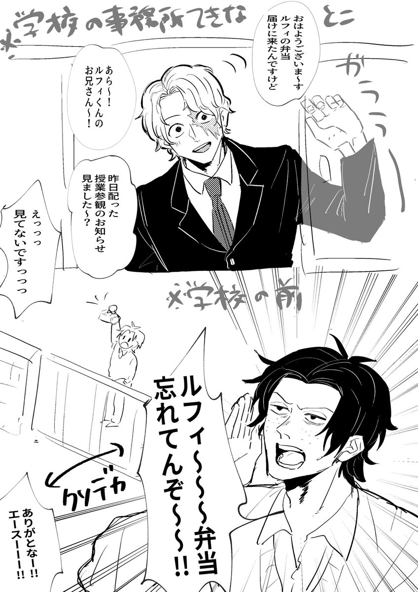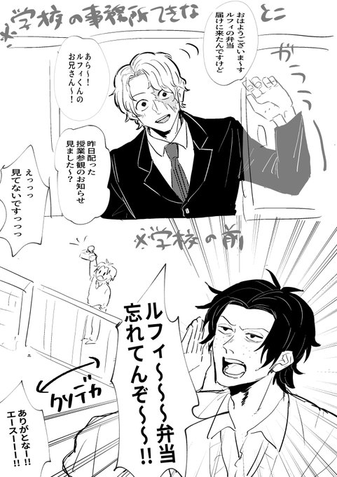 お弁当を忘れたルフィへの兄達の対応を描きました