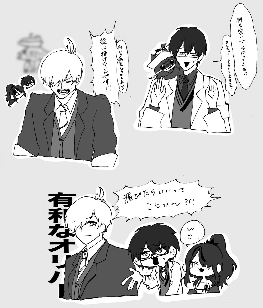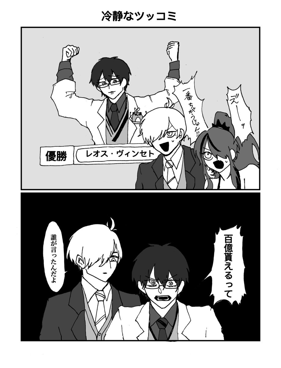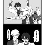 この2人の煽り合い 大好きです #まめねことレオス #レインの依頼書