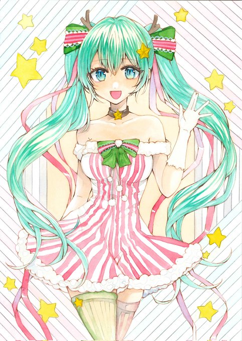ミクちゃんのクリスマス #初音ミク #アナログイラスト