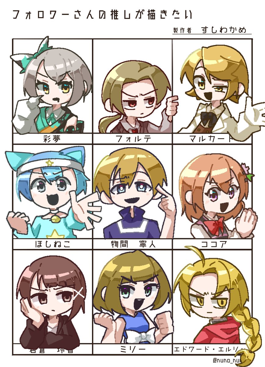 #フォロワーさんの推しが描きたい おまたせしました!!!色んなキャラが描けて楽しかったです!!!!ありがとうございました!!!!✨✨✨