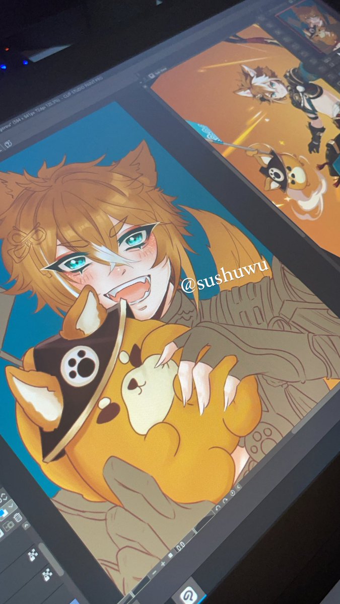 !!! GOROUU !! Getting some colouring done for #comiccon ! I promised myself I wouldn’t do last minute artworks 🥲 but here I am 10 days left till the con- #GenshinImpact #genshinimpactfanart #gorou #wip