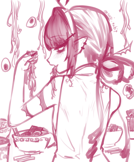 ラーメンを食べるうちの子rkgk #絵描きさんと繋がりたい #イラスト