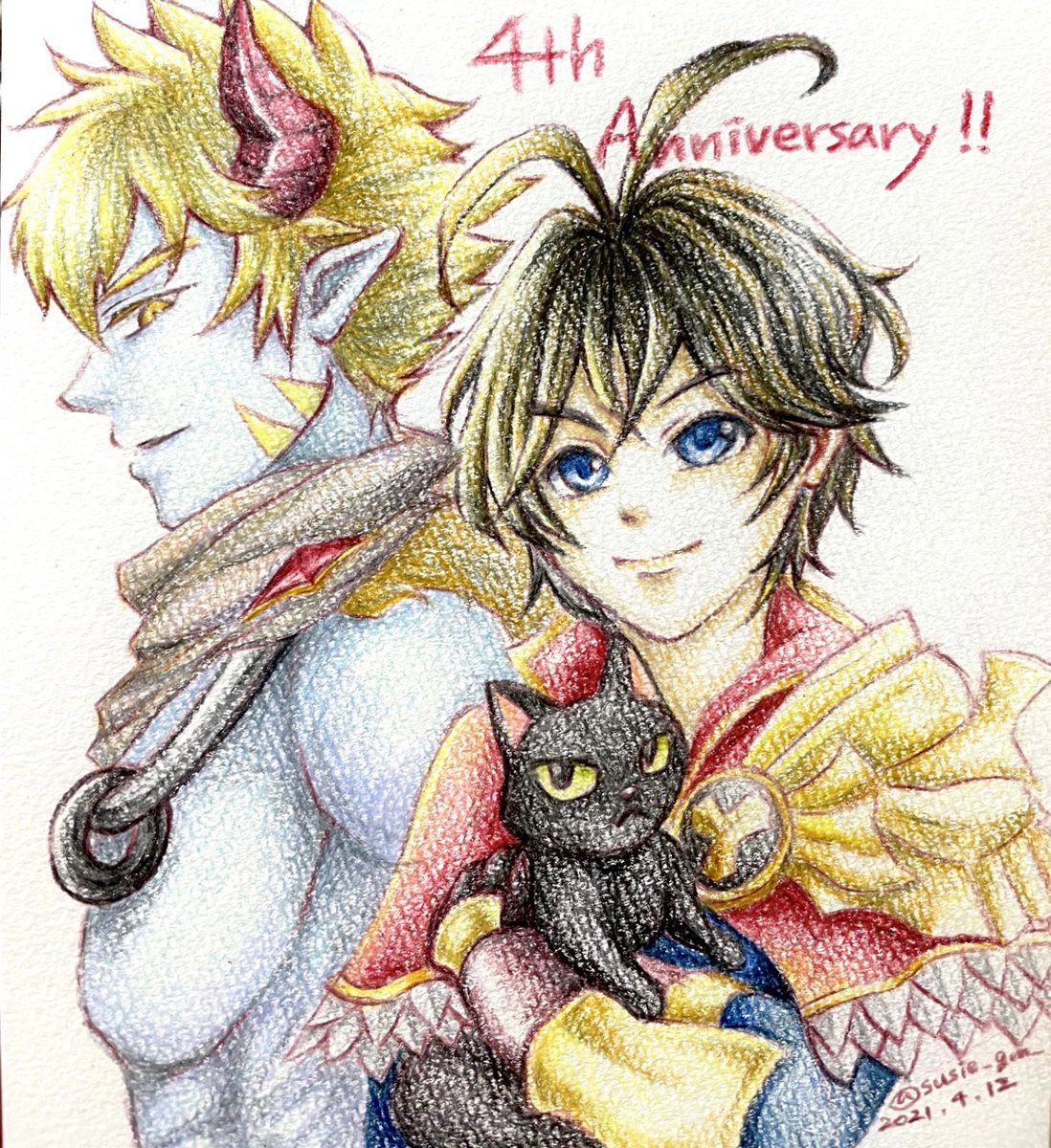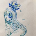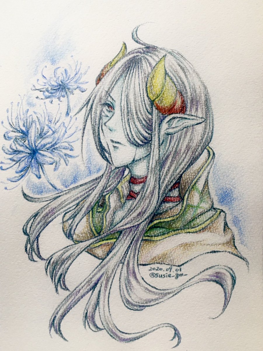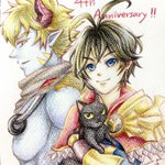 #絵師は初投稿イラスト最新イラストお気に入りイラストを見せる見た人もやる 1枚目: 初投稿(2015年のサガワンドロジャミ子) 2枚目: 最新(一昨日描いたベリト様) 3枚目: お気に入り(クロノクロス21周年で描いたツクヨミ)