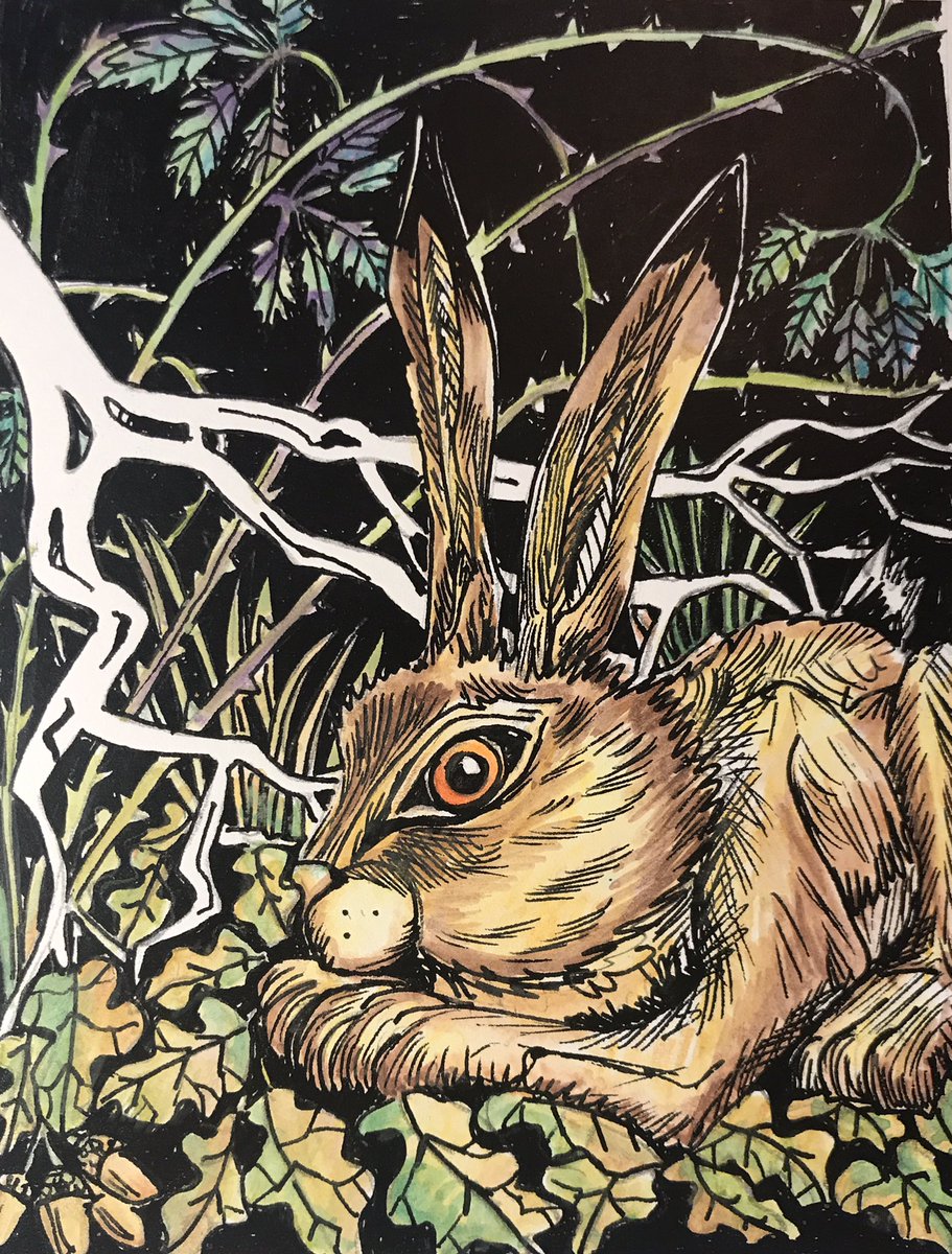Over The Fallen Print from my ink drawing with watercolour washes @susiehammondart #suffolkart #suffolkcoast #artvsartist #ArtistOnTwitter #illustration #artforsale #artshare #nature #wildlife #heaths #suffolkartist #interiordesign #art #tree #wood #hare