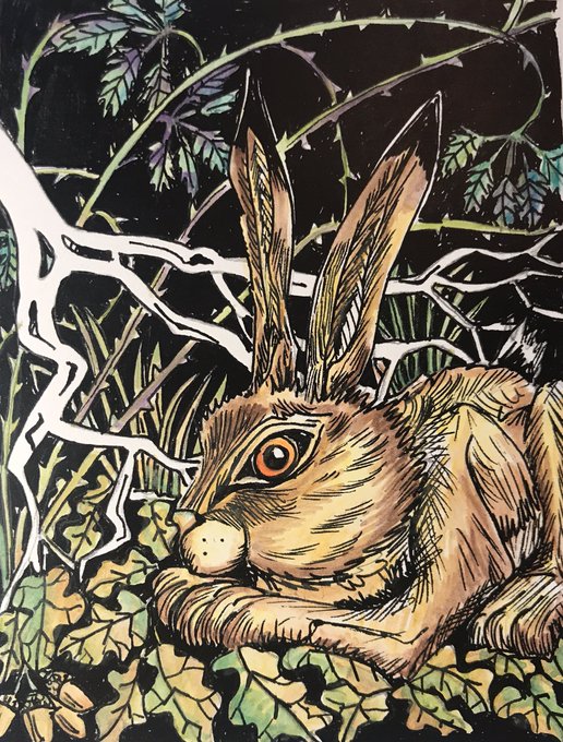 A Glimpse through the Hedgerow new ink pen drawing ready for some colour @susiehammondart #ArtistOnTwitter #artforsale #suffolkartist #Illustrator #suffolkcoast #hare #Countryside #nature #wildlife #drawing #artshare #Creative #inktober2020