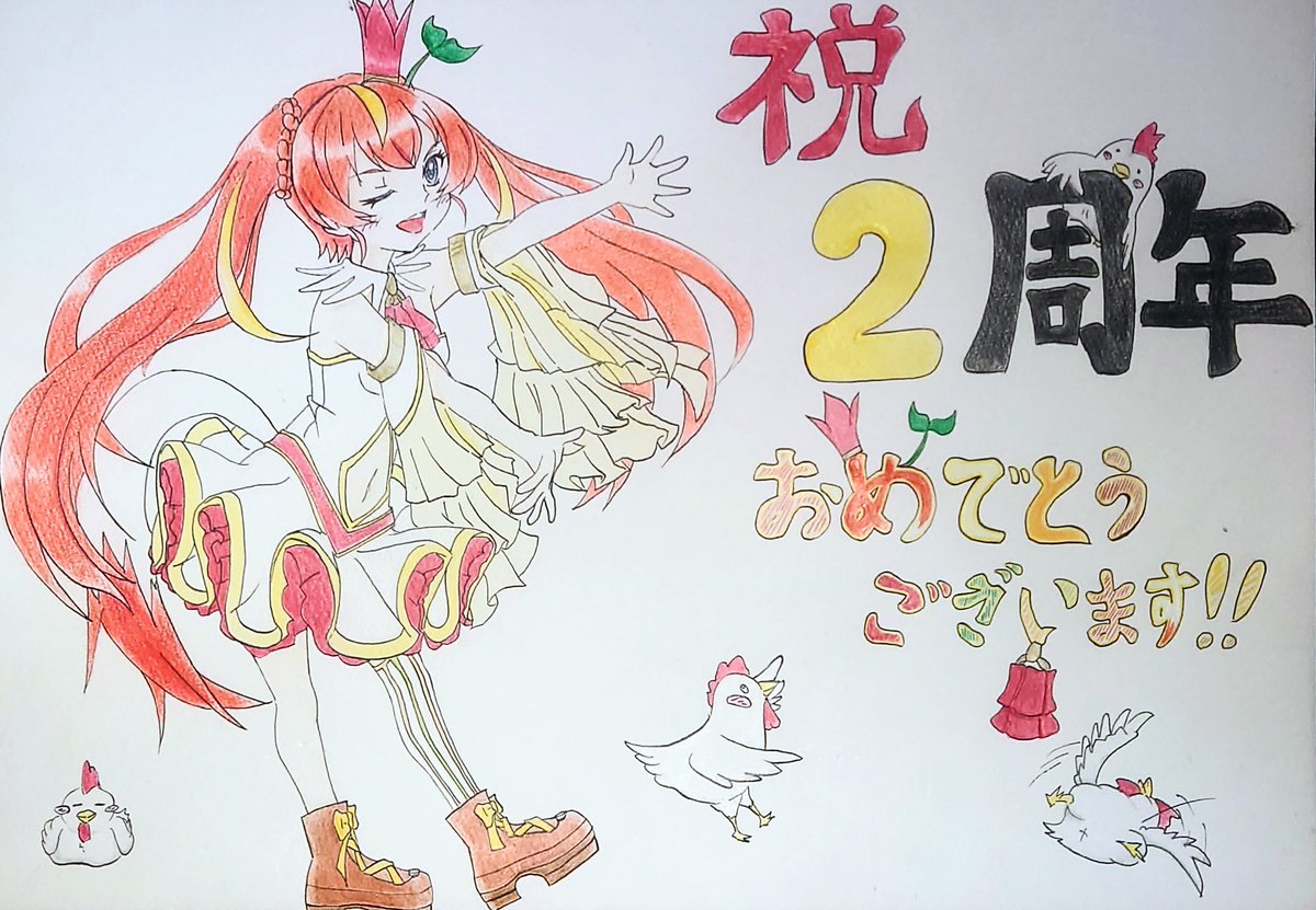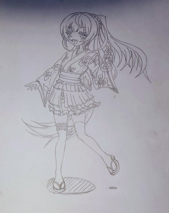 #芽唯生誕祭2022 #芽唯画 お誕生日おめでとうございます!! 誕プレとして、前に線画で上げさせて頂いたショート丈浴衣を着た芽唯さんのイラストか完成させました! 色鉛筆が比較的(他は絶望的)に得意なので、色鉛筆での色付けになっています( ´◡‿ゝ◡`)
