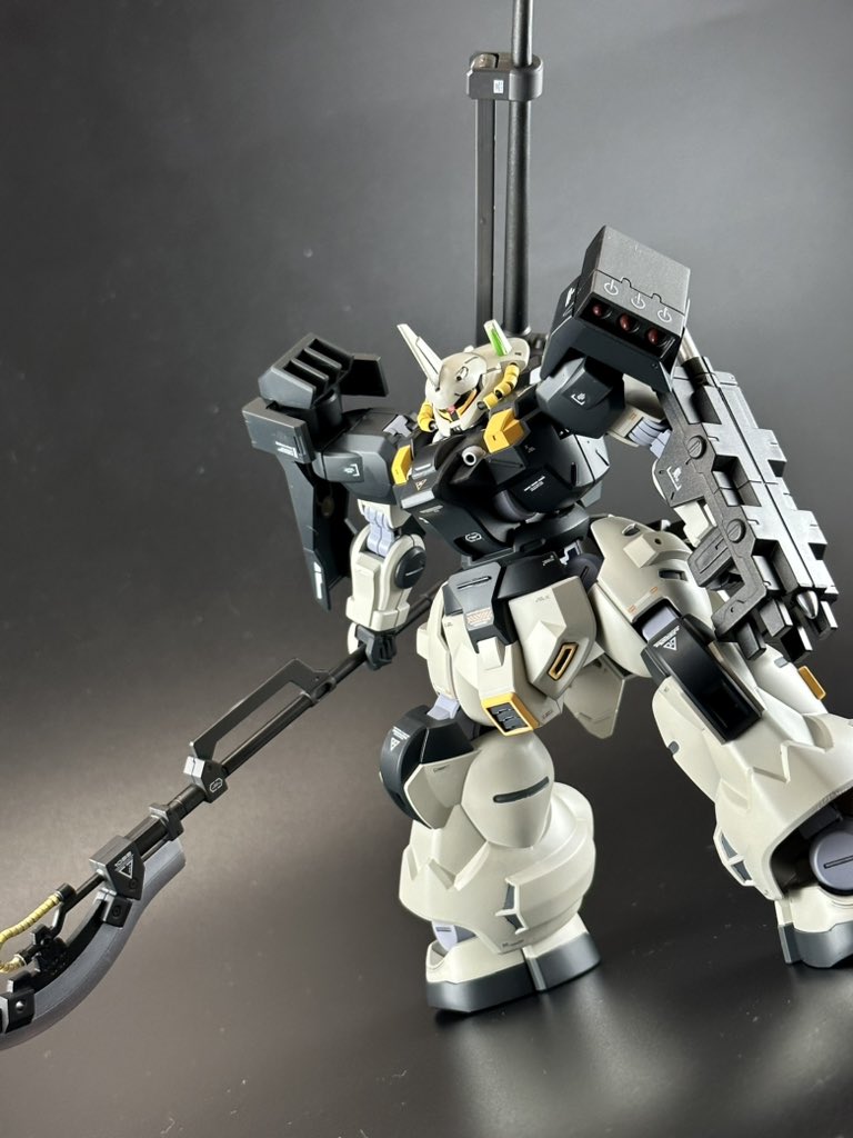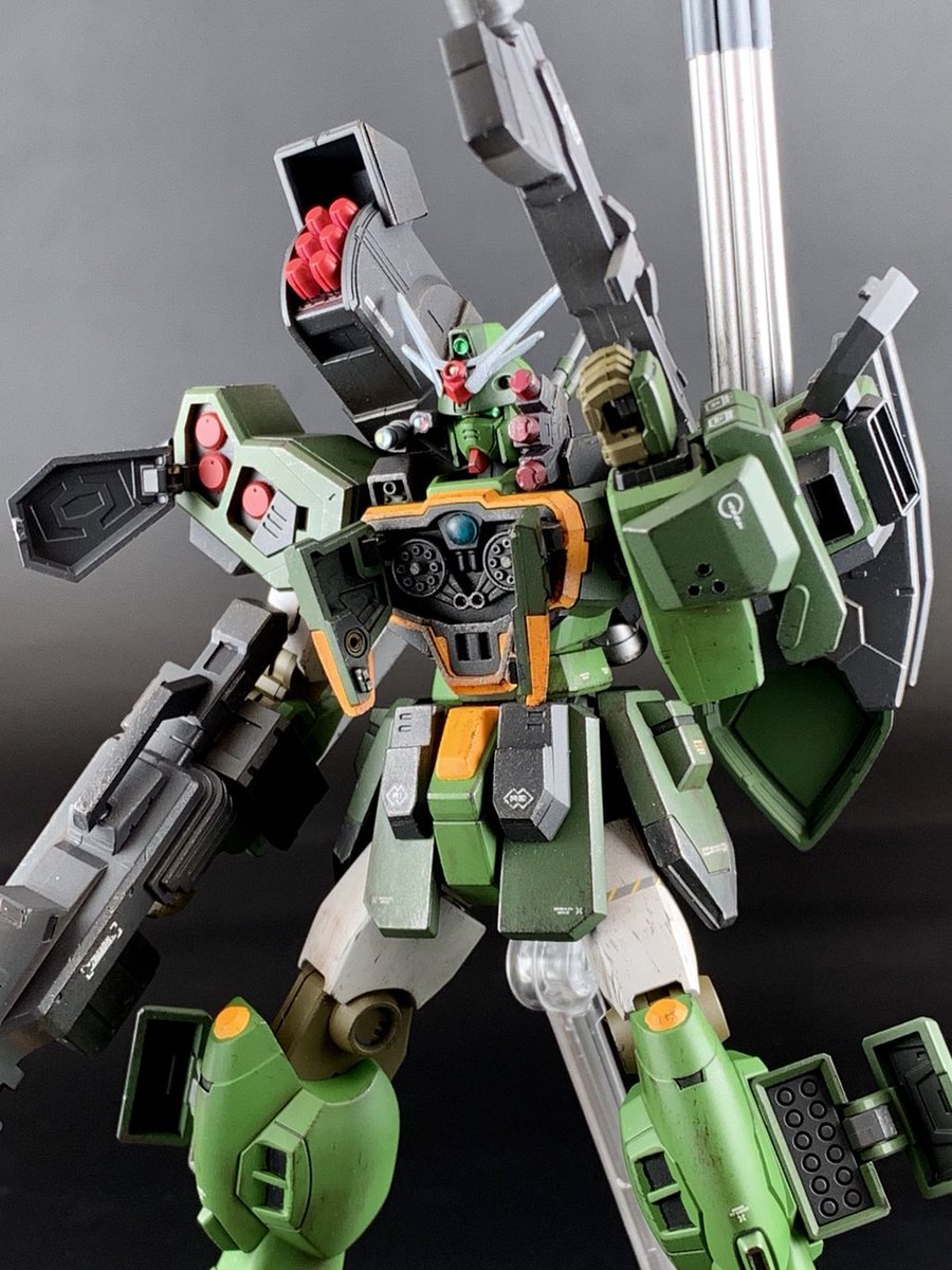 ガンダムヘビーアームズコマンド完成しました♪ コマンドガンダムをモチーフにして作ってます。 最近綺麗系ばっかだったので今回は汚しと台座も作りました⭐️ #ブランイヴウ #ガンプラはどんな自由な発想で作ってもいいんだ