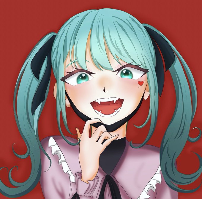 「吸っちゃっていいの?」 久しぶりにちゃんとお絵描きしました! ヴァンパイアのミクすこ!! #ヴァンパイア #初音ミク #イラスト好きさんと繋がりたい #イラスト