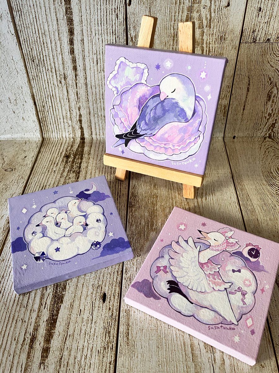 ネムネム鳥ちゃんシリーズ描きあがりました!🦢💤 4月29日(金)の19時に原画を出品します🌟
