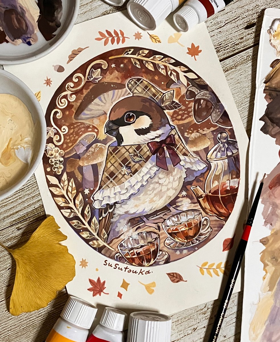アナログ画材で鳥の絵を描いてます🌟 #三億アカウントの中から私を発掘してください