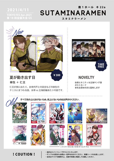 4/11全国GSお品書き | ASAYA #pixiv pixiv.net/artworks/89019… こちらが4/11の全国GSのお品書きになります!! 新作は柳生+仁王の新刊とポストカードです。 見てもらえたら嬉しいです~✨