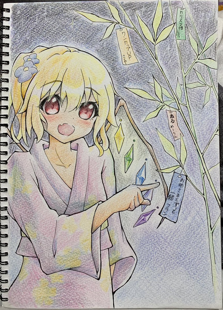 フラン 七夕Ver. 描きました♪ みんなはどんな願い事叶えてほしい? #七夕の願い事 #七夕 #イラスト #絵描きさんと繋がりたい #東方