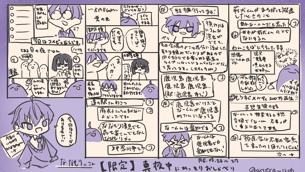 遅くなりましたが放送ありがとうございました!! とっても楽しかったです!!! 新曲楽しみにまってます(● ˃̶͈̀ロ˂̶͈')੭ꠥ))💜 今日も一日お疲れ様です!!おつもりでした!(❁ᴗ͈ˬᴗ͈)っ🍵 #ななもりなま 4枚に好きを詰め込みました🙇♂💦(全部好き過ぎてやばい書ききれない) #ななもりぎゃらりー