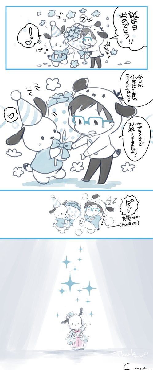 サンリオキャラクター大賞2020 ポチャッコ3位!!!おめでとう~~!!;ワ; (0229誕生日サプライズぽちゃゆのまんが再投稿です) #ポチャッコ #ポチャッコ3位