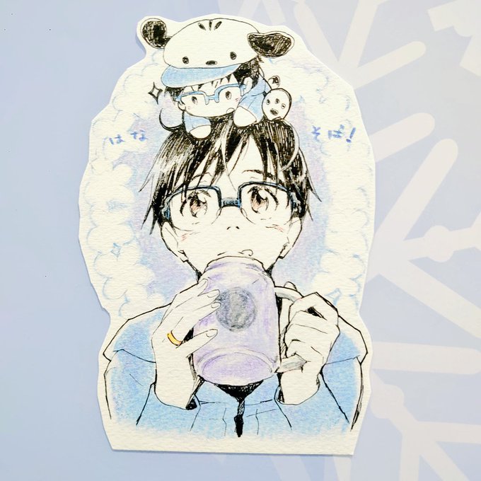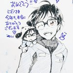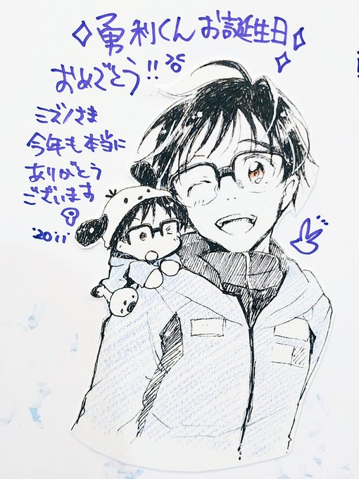 お祝いメッセージに描いてきました勇利くんとぽちゃゆ。以上! いつも幸せをありがとう😭🙏✨