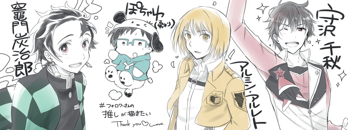 4 12 大変お待たせいたしました。今回はフォロワーさんの推し一人ずつを描いてみたよ。 twitter.com/sutoburu/statu… 21/01/09 01:00