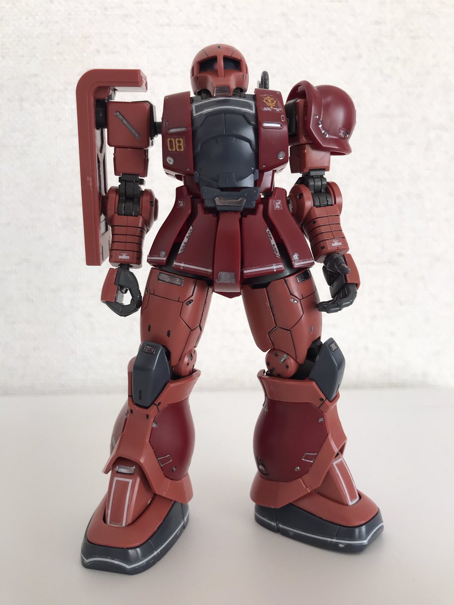 2 15 HGオリジンの ザクⅠシャア専用機 ですぅ〜 テトロンシールを貼って、ガンメタで差し色を部分塗装しました。 #ガンプラの画像貼るとRTされると聞いて #ガンプラ好きと繋がりたい #ガンプラ 21/04/26 16:39