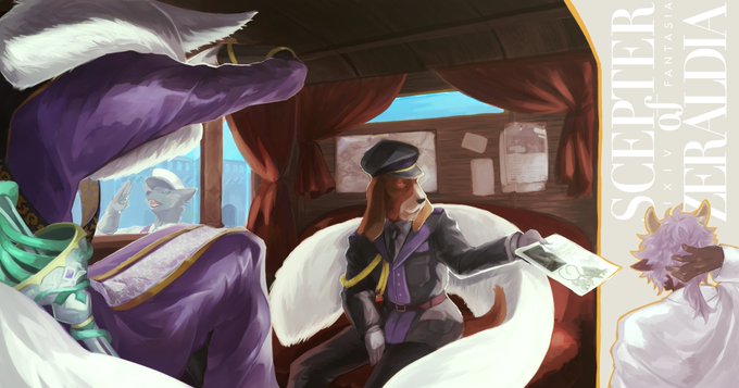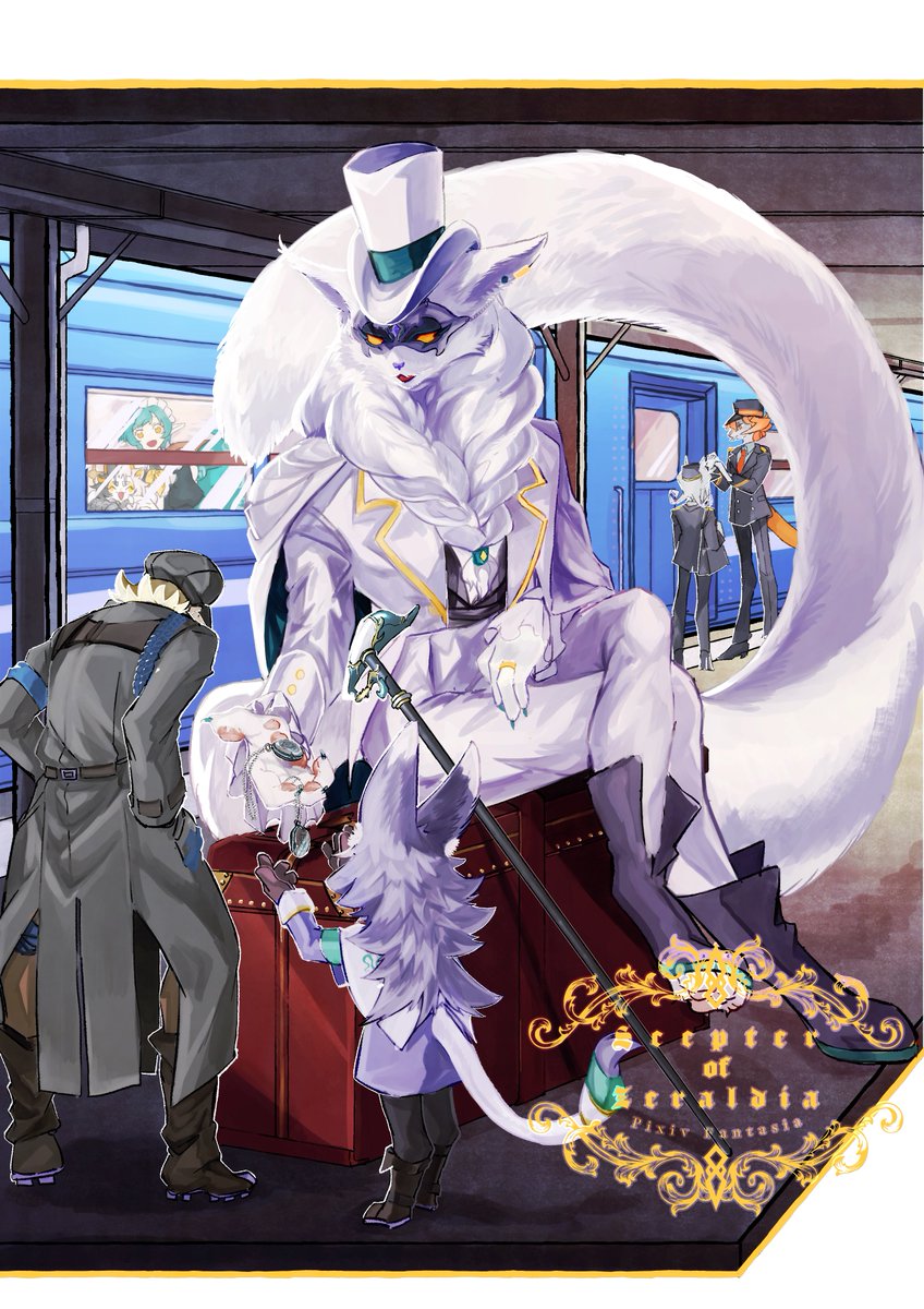 【PFSOZ】白猫老紳士の旅装束 | 獣ノ屋 #pixiv pixiv.net/artworks/10329… #pixivファンタジアSOZ #ザリア軍 描きたいヒトを詰め込みに詰め込んだ一枚です。 列車描ける人やべぇなと改めて思いました、まる。