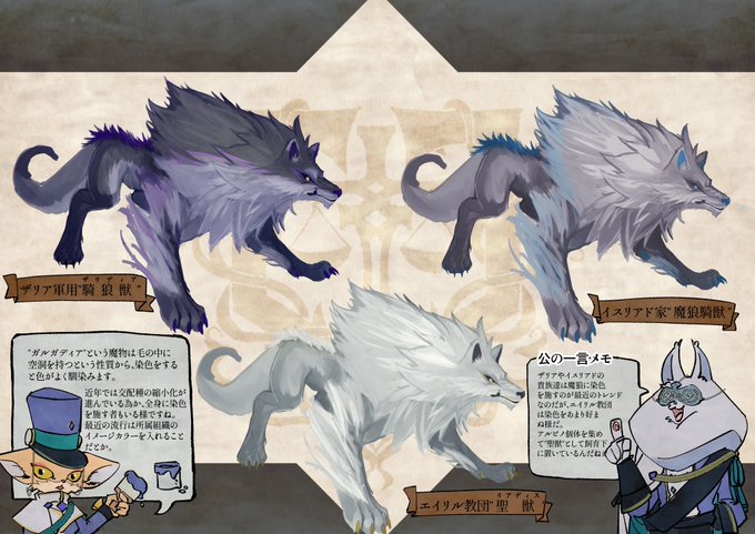 【PFSOZ】風の魔狼【魔物発券報告書】 | 獣ノ屋 #pixiv pixiv.net/artworks/10304… レースならちょうどここにイスリアド家とエイリル教団の騎獣がおってだな…😉