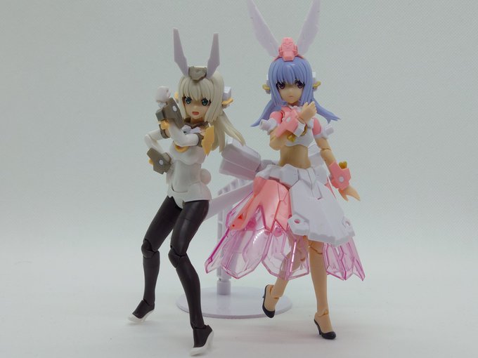 2 7 絶妙なバランスのバーゼからの脚とスラストアーマー装備のマジカルバーゼ。腰の辺りのブースターを脚につけたけどこれを吹かすとスカートが捲れて大変なことに #メガミデバイス 22/09/07 19:12