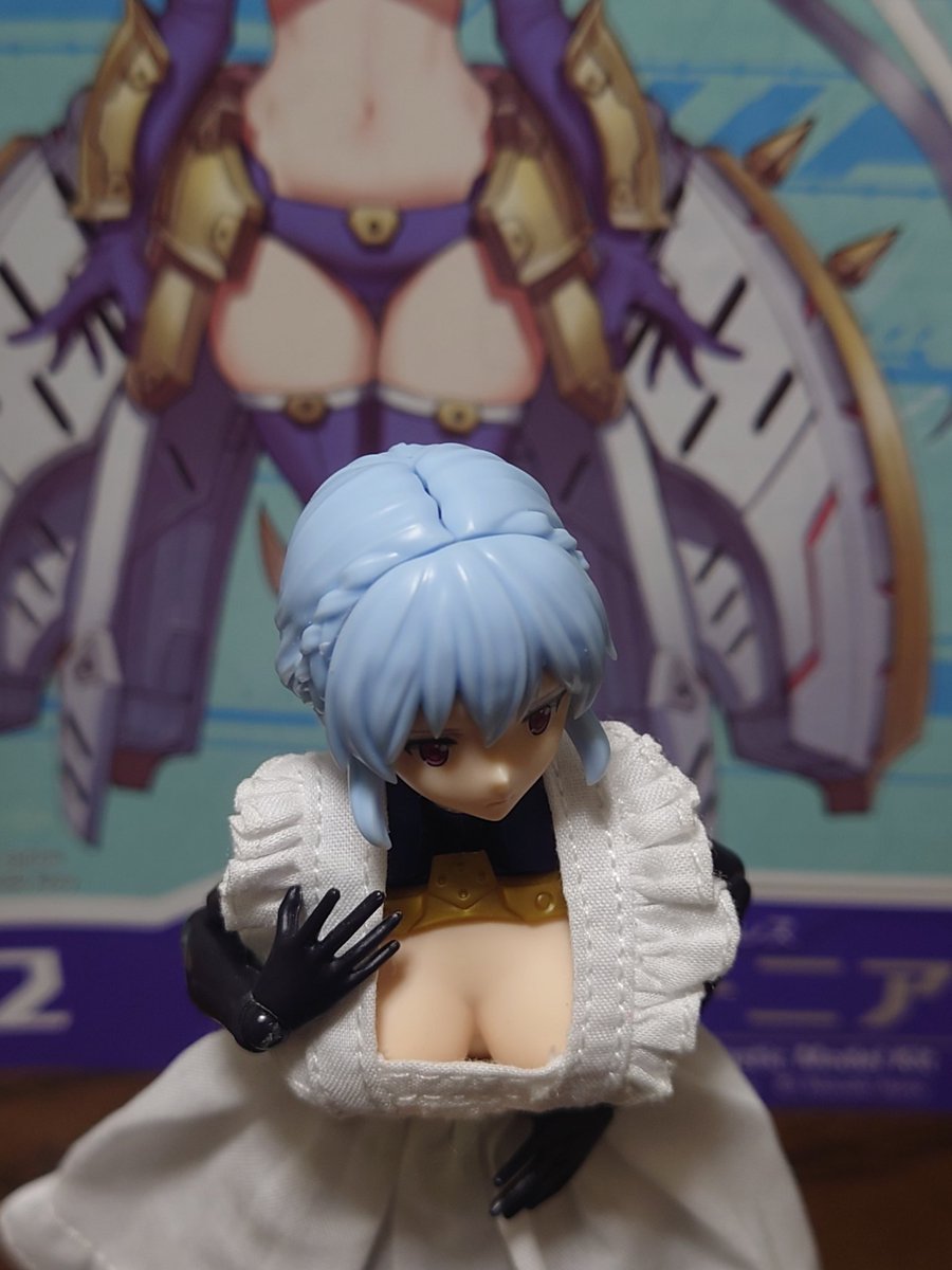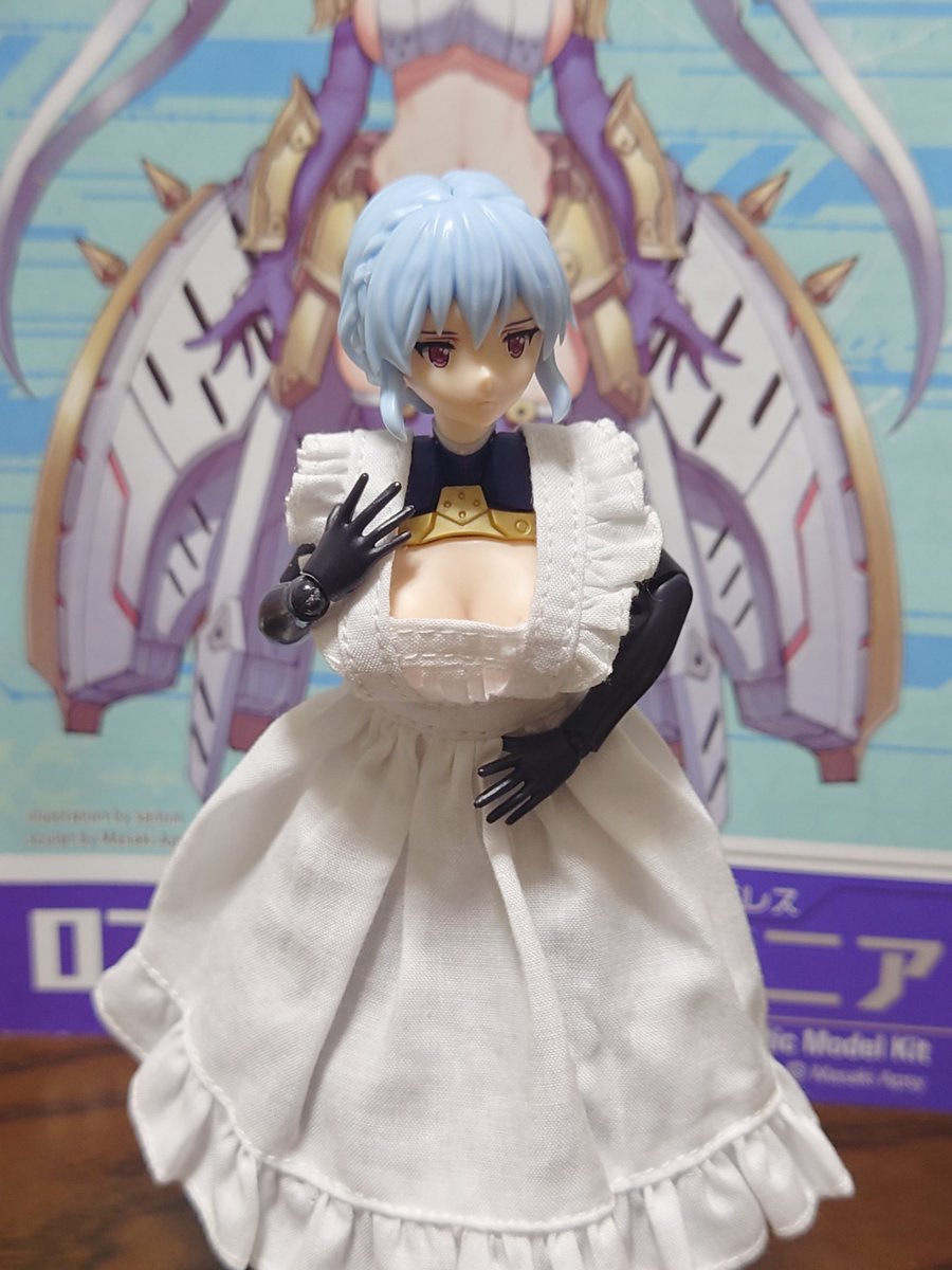 少し問題があって服が着れずにエプロンだけになったが似合っておる。 少しこぼれそうだが #ダークアドヴェント この写真だと #メガミデバイス の要素ないな、手足スサノヲだけど