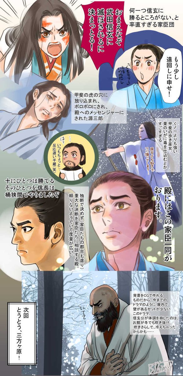 #どうする家康 #どうする絵 #どうする家康後援会 第24回「築山に集え!」通説を覆し、瀬名悪女説を斬新な切り口で描いた。瀬名は家康がかつて漠然と描いた夢を具現化し、家康の手に託していく。破滅までのルートまで完璧な「if」だった。半蔵は毎回外さないなw薪割りはホント難しいよ。