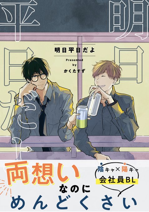 #明日平日だよ 劇的でドラマチックな事は何も起きない 2人の会社員の静かなストーリー 淡々と着実に2人の距離縮まってくのすごく!すごくいい! 表題の明日平日だよのシーンすごくいいなぁ 旅行に本を持ってくるの忘れたシーンも沁みた #かくたすず 先生 #創作BL大豊作まつり←良い