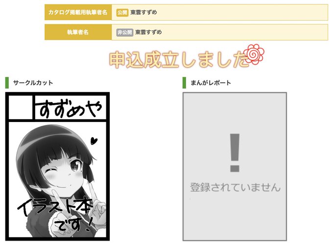 すずめや申込み完了しました。サークルカットは使い回しなので余裕があれば書き下ろしたいな #新C99